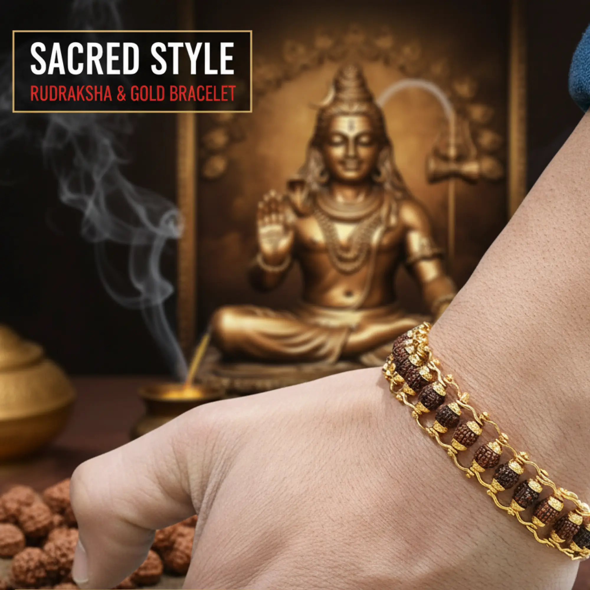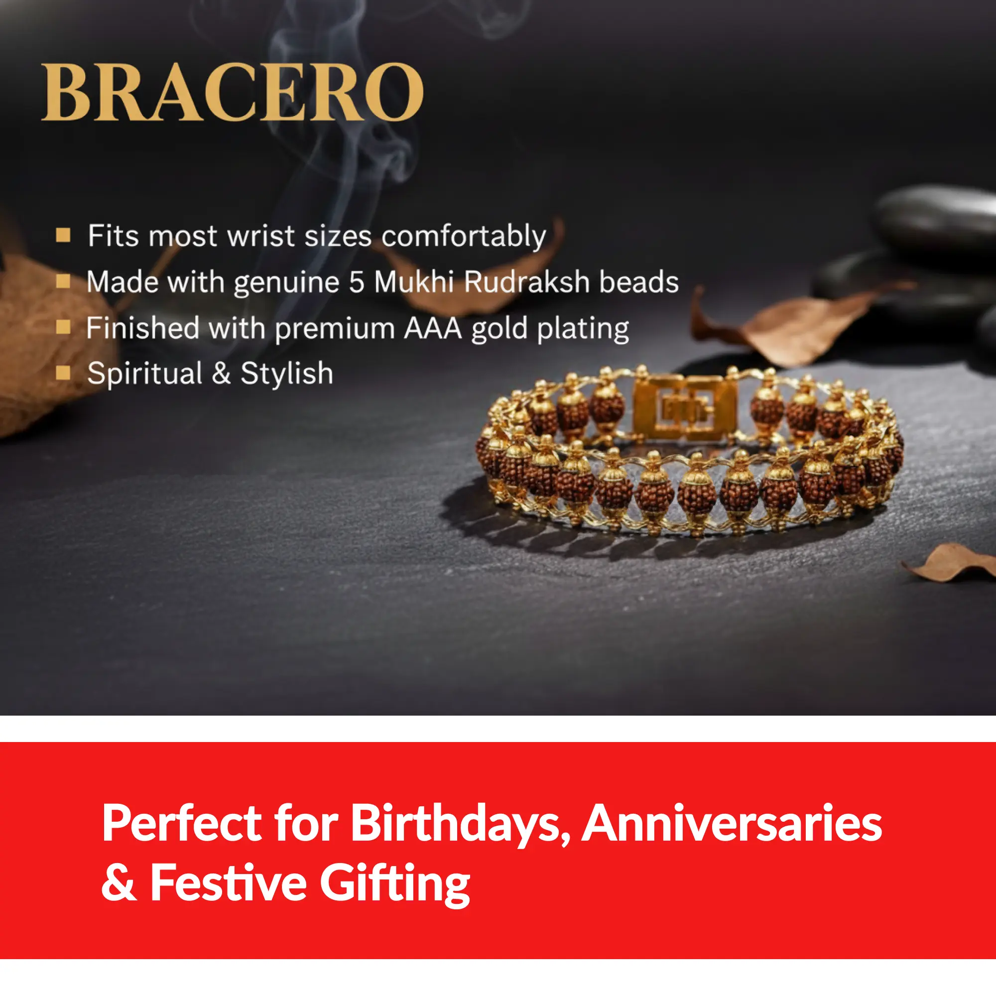 🌟 Bracero Gold-Plated Rudraksha Bracelet — Calmness, Clarity & Everyday Elegance