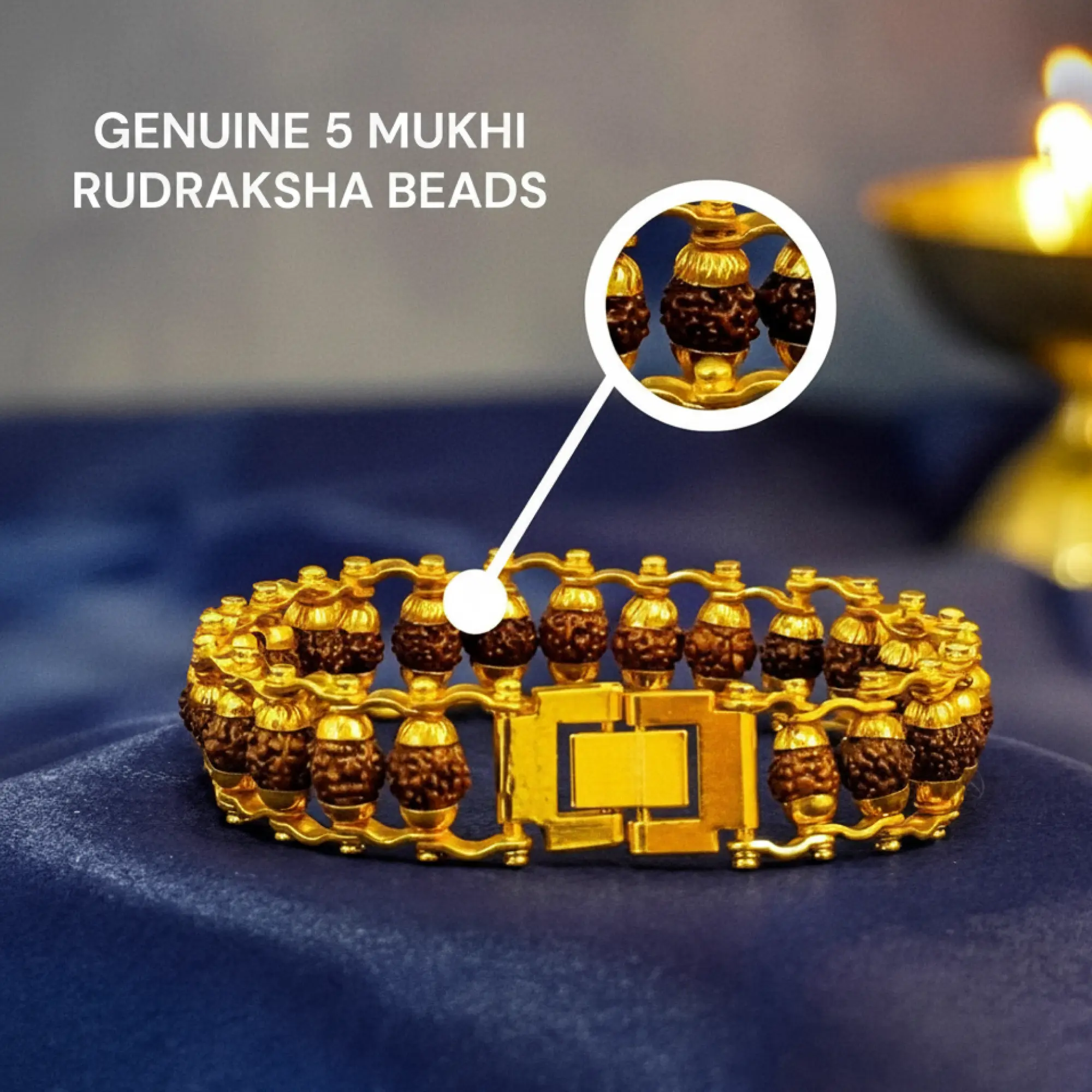 The bracelet is designed with a high-quality gold-plated frame. It not only adds a refined look but also keeps the Rudraksha beads firmly in place for long-term use.