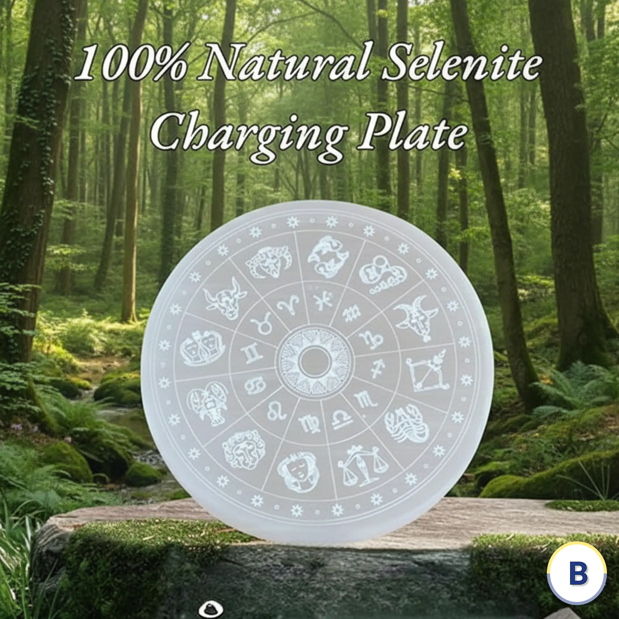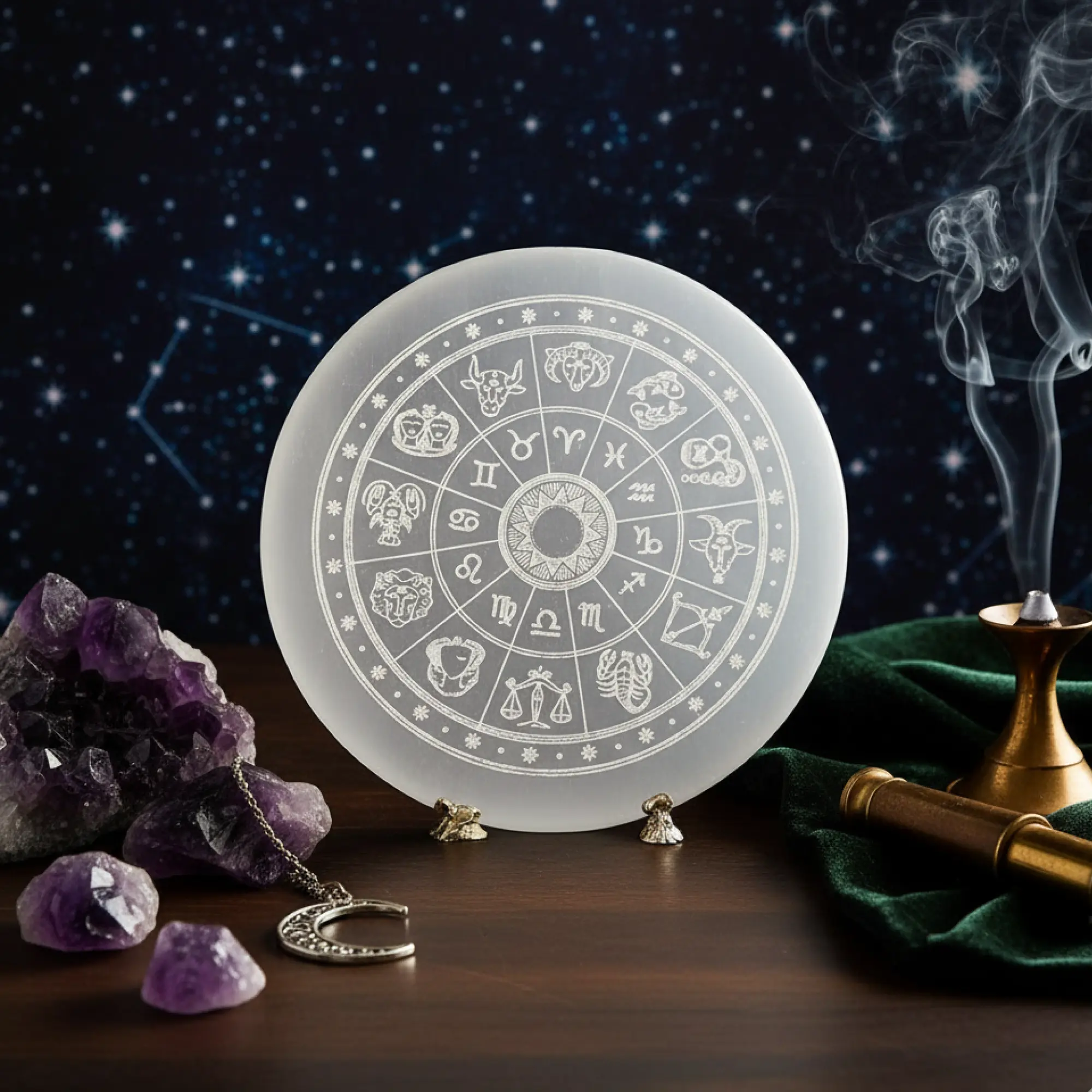 Zodiac Selenite Charging Plate – Crystal Cleansing & Recharging | Bracero